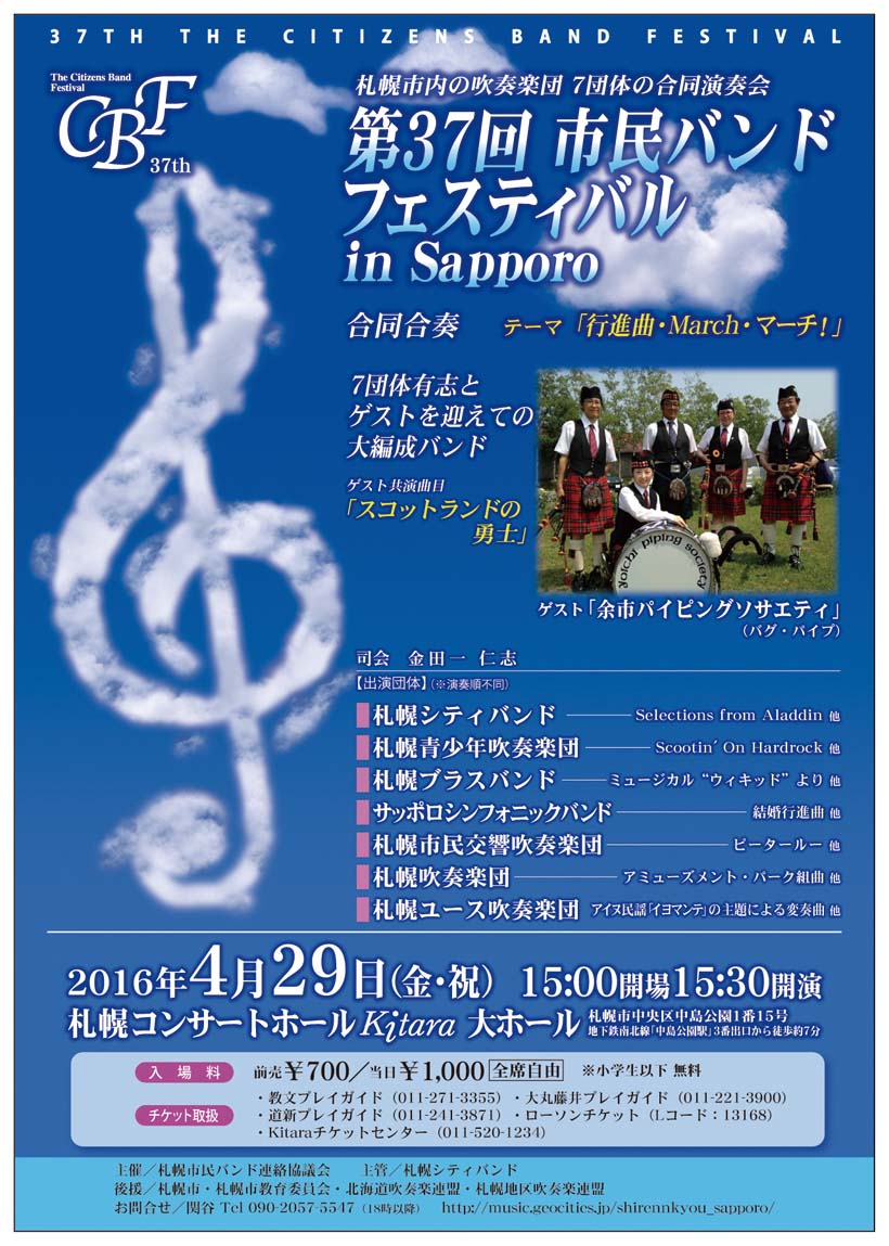 なお、次回の「第38回市民バンドフェスティバル in Sapporo」は、2017年4月23日(日)に札幌 コンサートホールKitara大ホールで開催予定で、札幌青少年吹奏楽団が主管を担当します。